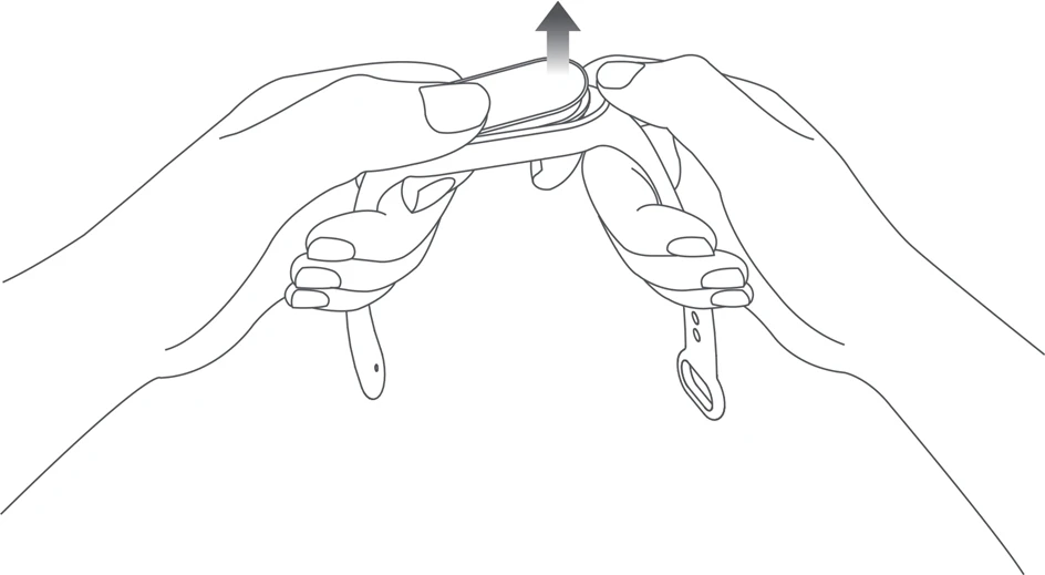 Take off the band and pull the straps from both ends with your hands until there is a small gap between the device and the strap slot,