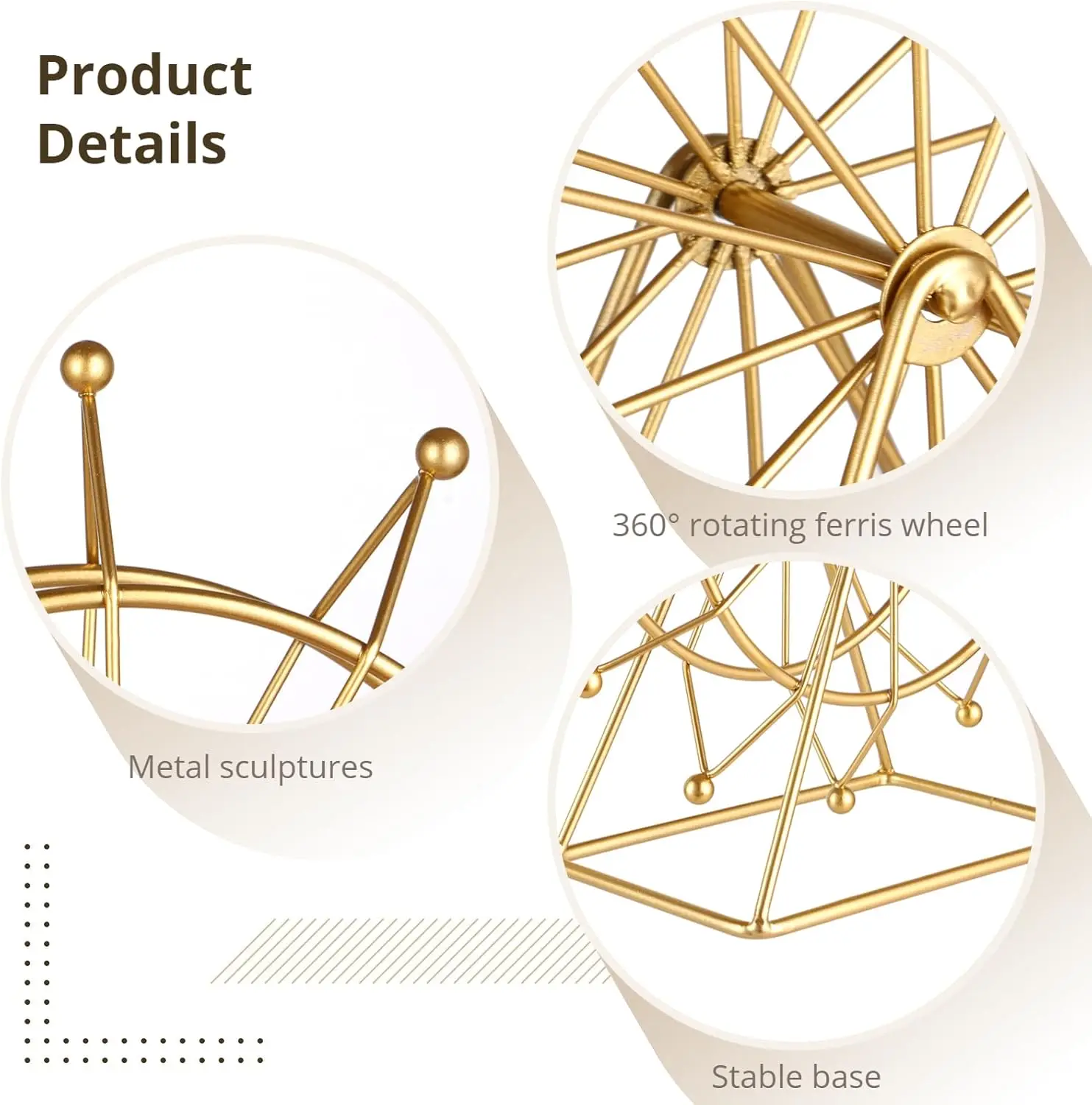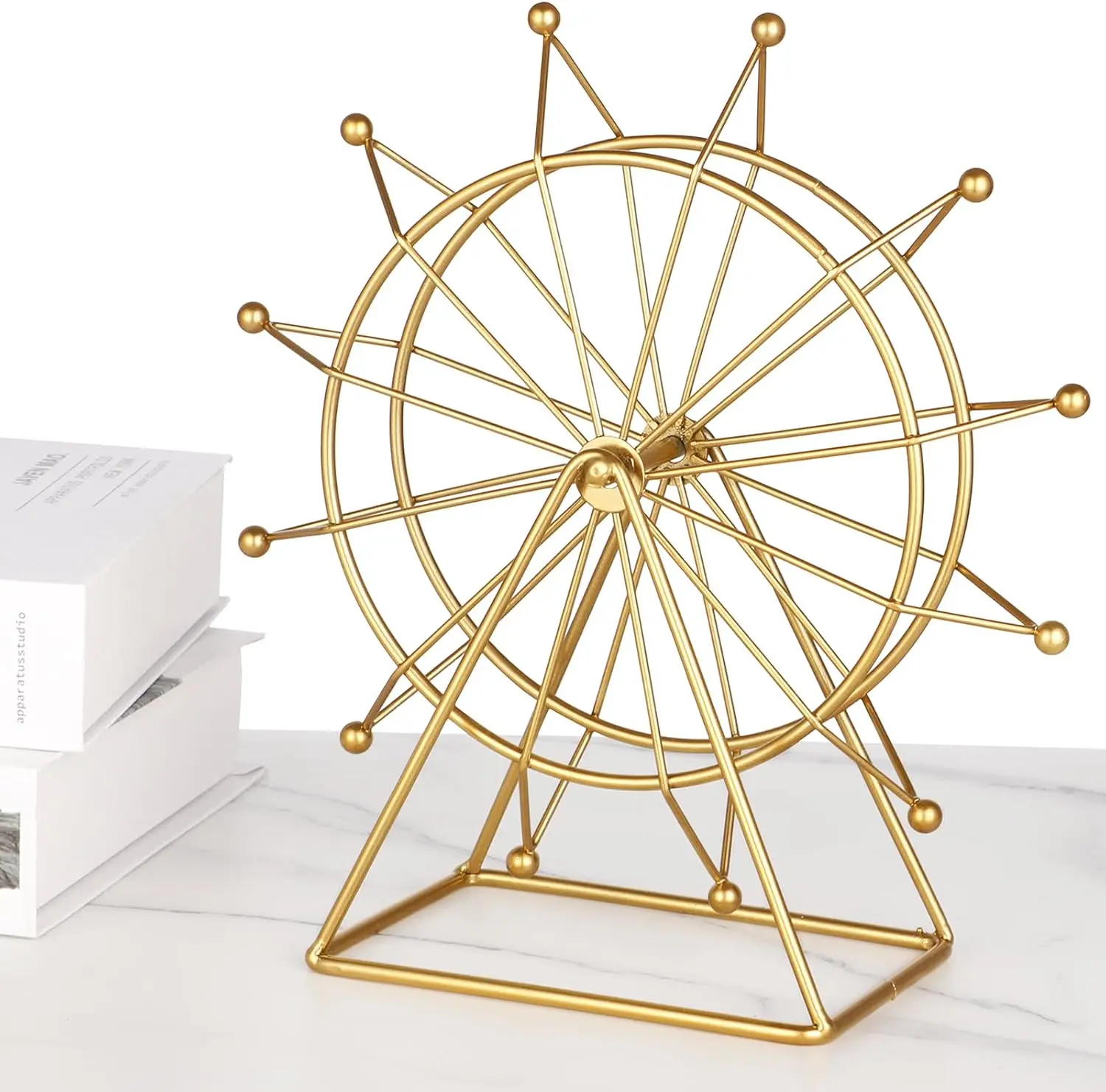 Lightweight yet sturdy, this home decor accent is easy to place and reposition. Its golden shine reflects elegance, while its unique Ferris wheel design sparks conversation and adds personality to your space.